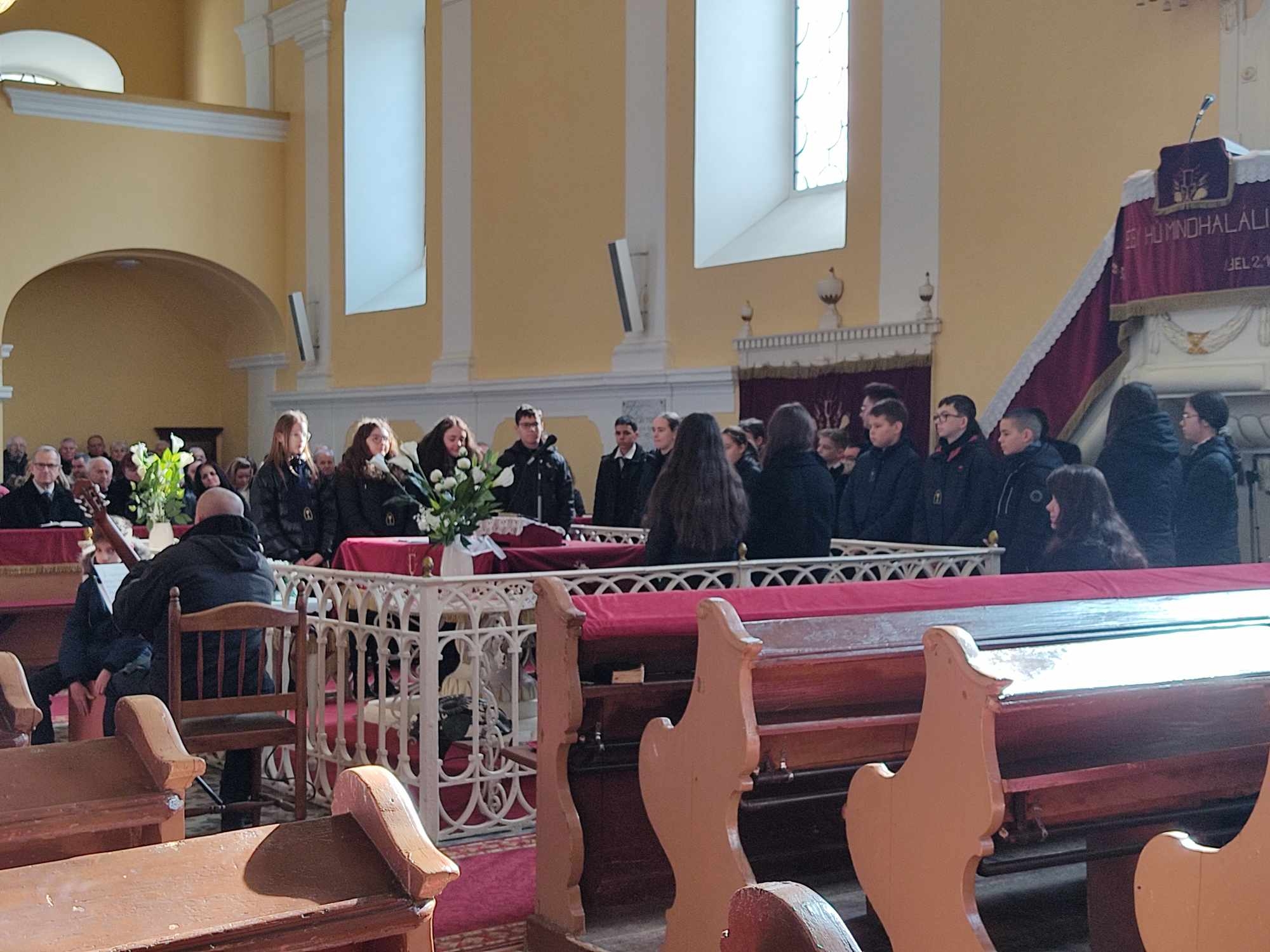 2025. február 16-án, a Házasság hetén, a 7. osztály tett bizonyságot a sátoraljaújhelyi református templomban. A versek és énekek a házasság gondolatkörére épültek, s bibliai idézetekkel próbáltuk igazolni, hogy Isten a házassági kapcsolatot kezdettől fogva megáldotta. (I. Mózes 1:27-28) Ha keressük és követjük a törvényeit és parancsait, a házassági kapcsolatunkat is áldások kísérik.