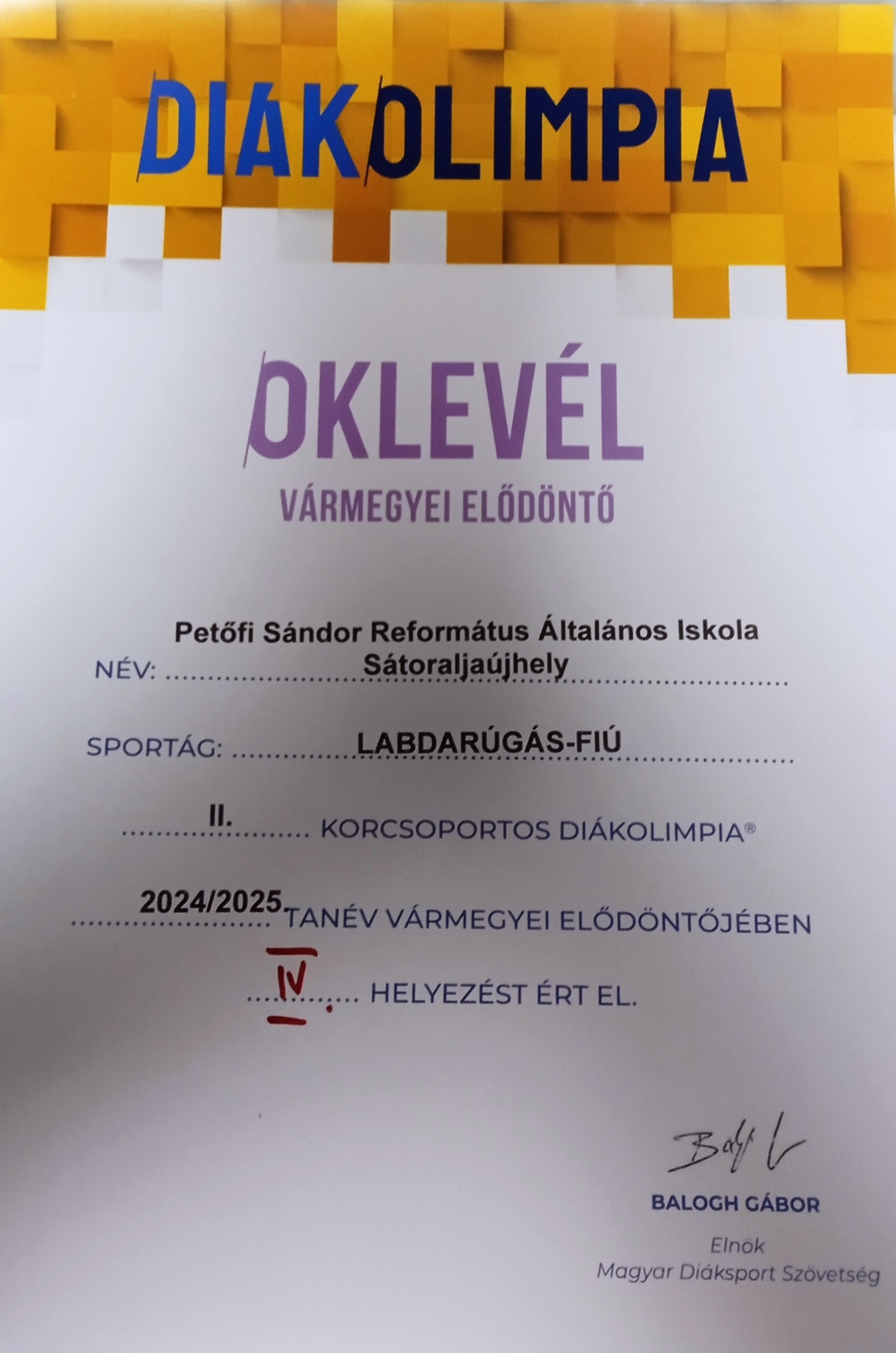 2025. április 3-án iskolánk II. korcsoportja Miskolcon szerepelt a Diákolimpia megyei elődöntőjében, ahol lelkes, ügyes játékkal 4. helyen végzett.