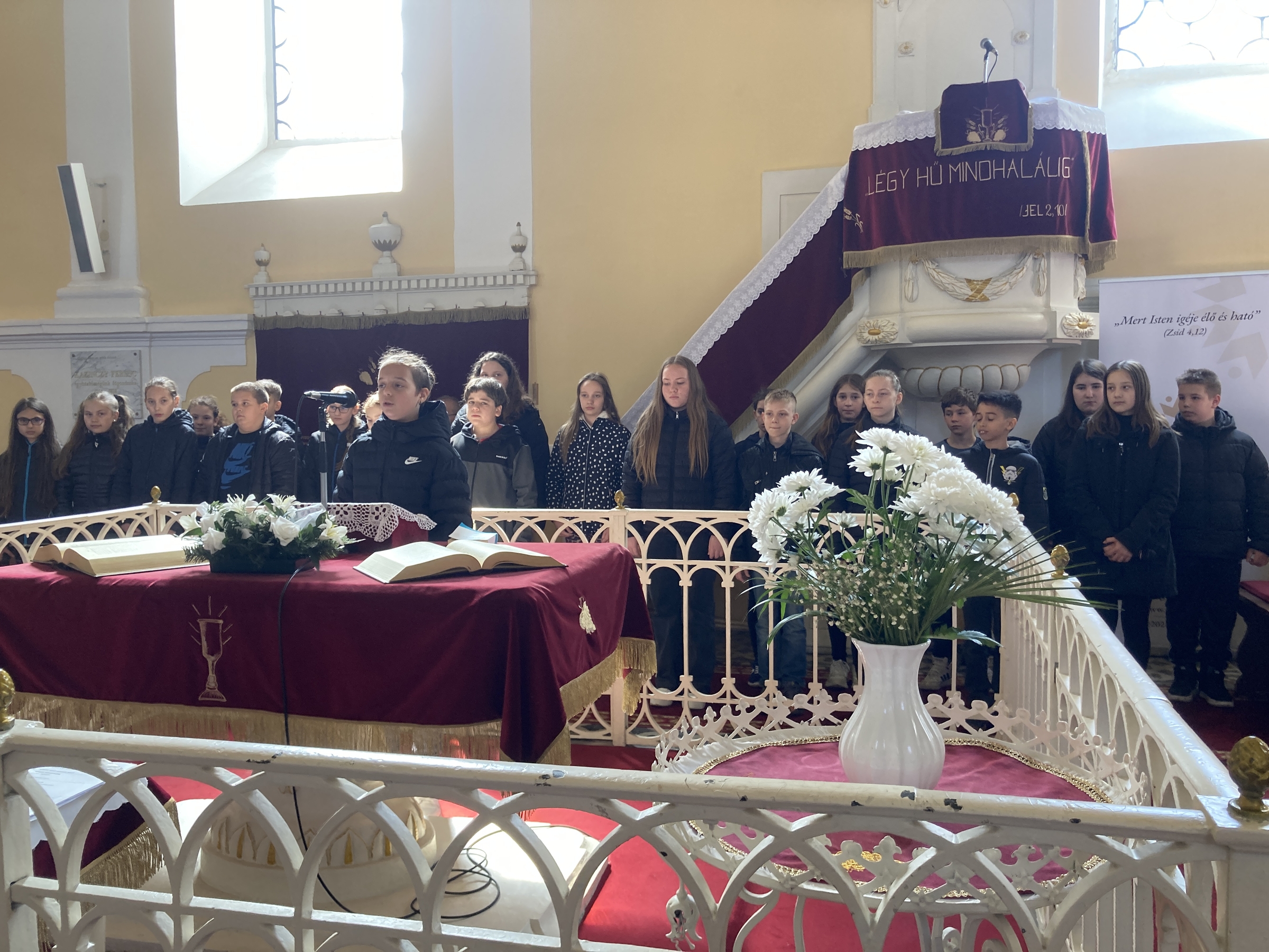 2025. április 6-án a gyülekezet előtt versben és énekben elevenítettük fel a nagyhét eseményeit.