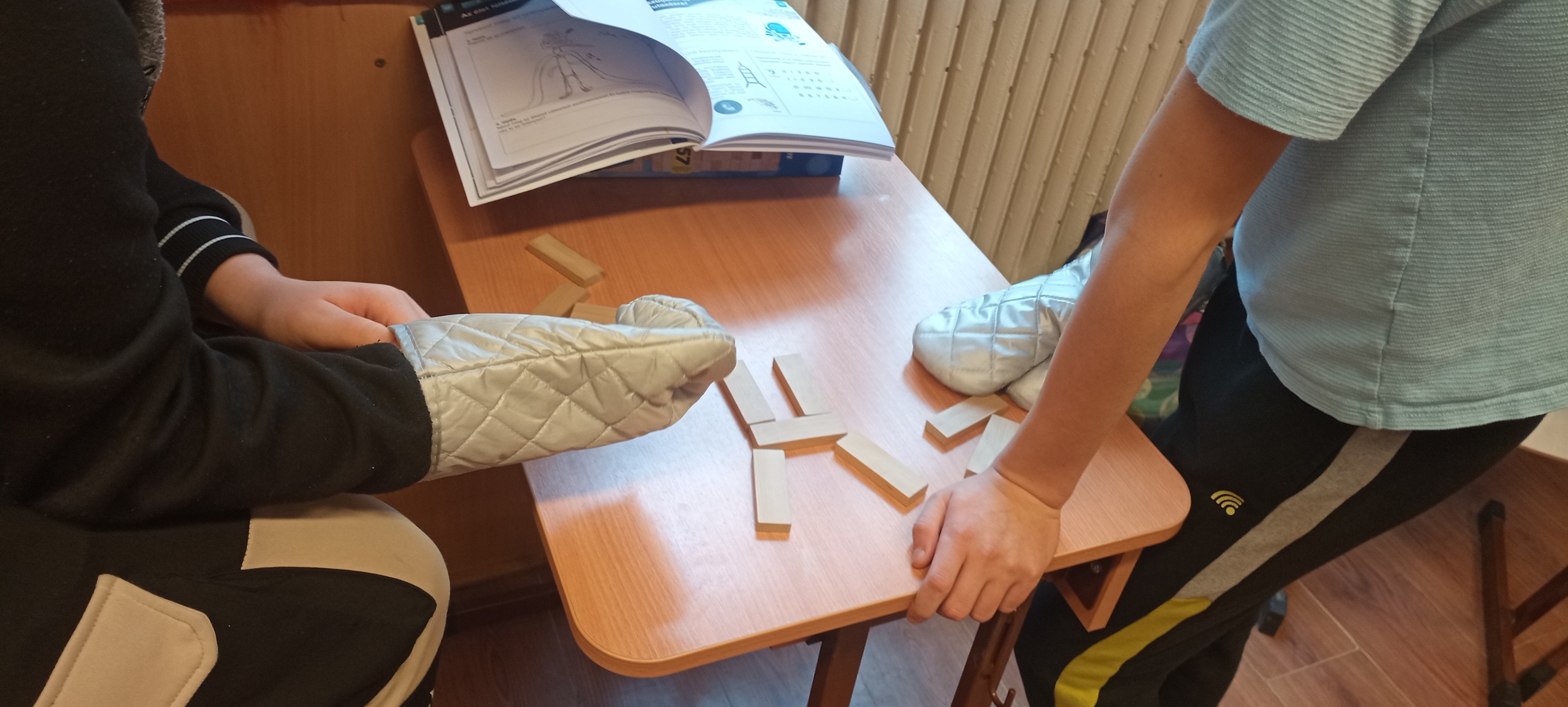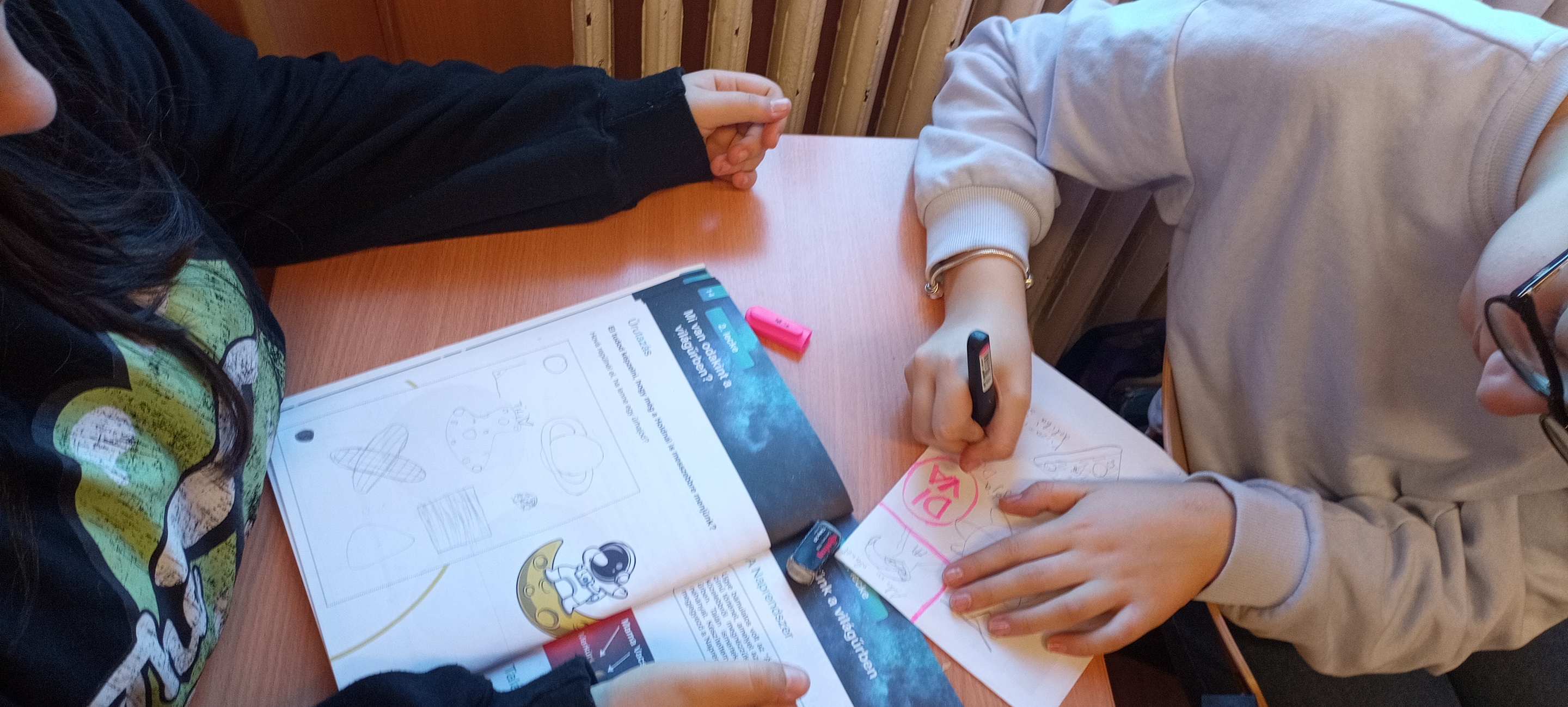 Gyakorlati feladatokkal igyekeztünk felfogni a méretarányokat, mértünk tömeget, hőmérsékletet, készítettünk Marsra leszálló helikoptermodellt, terveztünk saját űrlényt. Ettünk kézen állva, „építettünk rakétát” sütőkesztyűben.