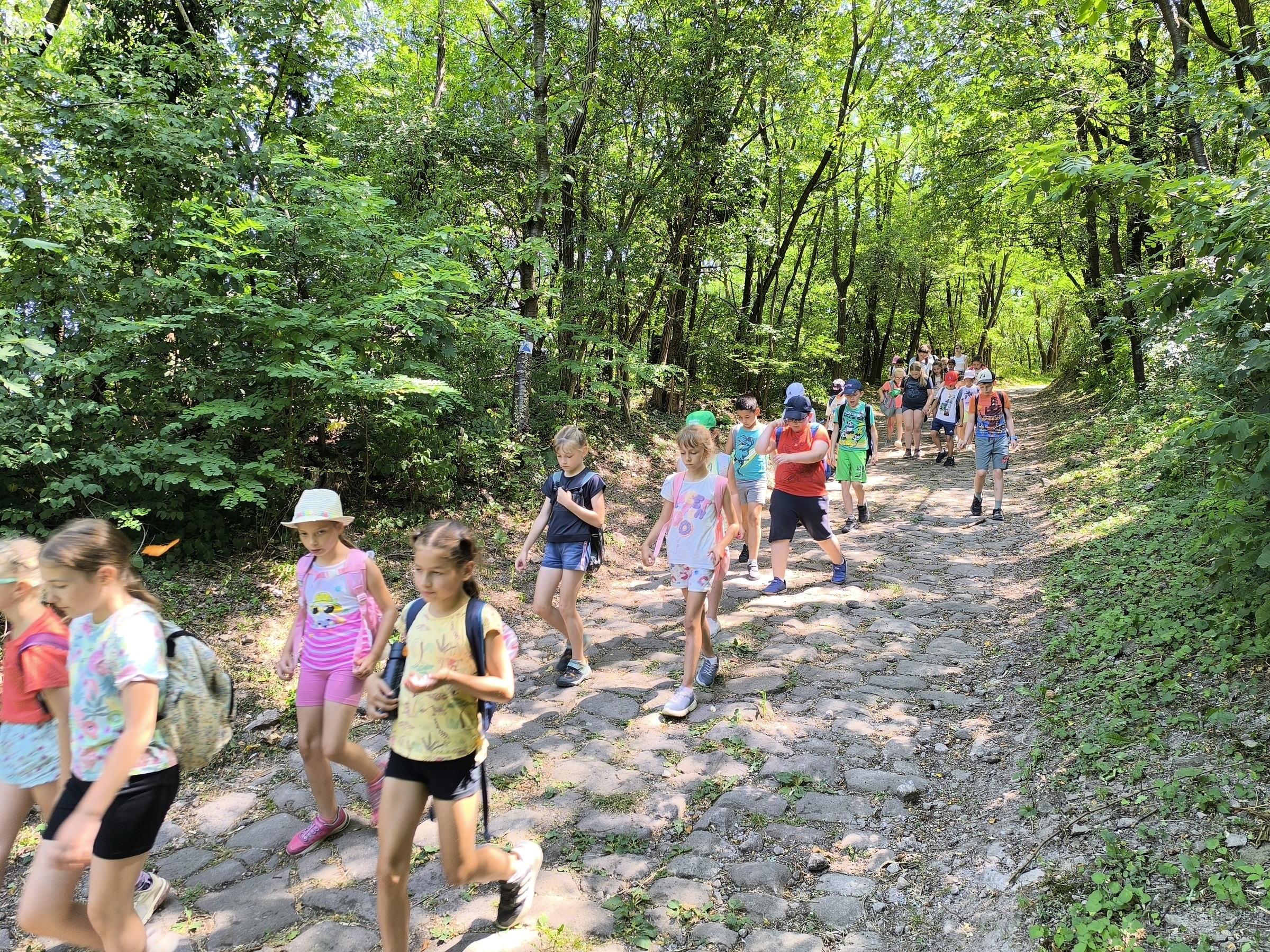 A táborunk negyedik napja is tartalmasan telt. Délelőtt egy kényelmes túrát tettünk a Kálvária kapuhoz. A nagy meleg miatt kifejezetten jó választásnak bizonyult az útvonal, mivel végig árnyékos ösvényeken haladtunk, így a gyerekek komfortosan és biztonságban élvezhették a kirándulást. Az erdei séta során megfigyeltük a természet apró csodáit.